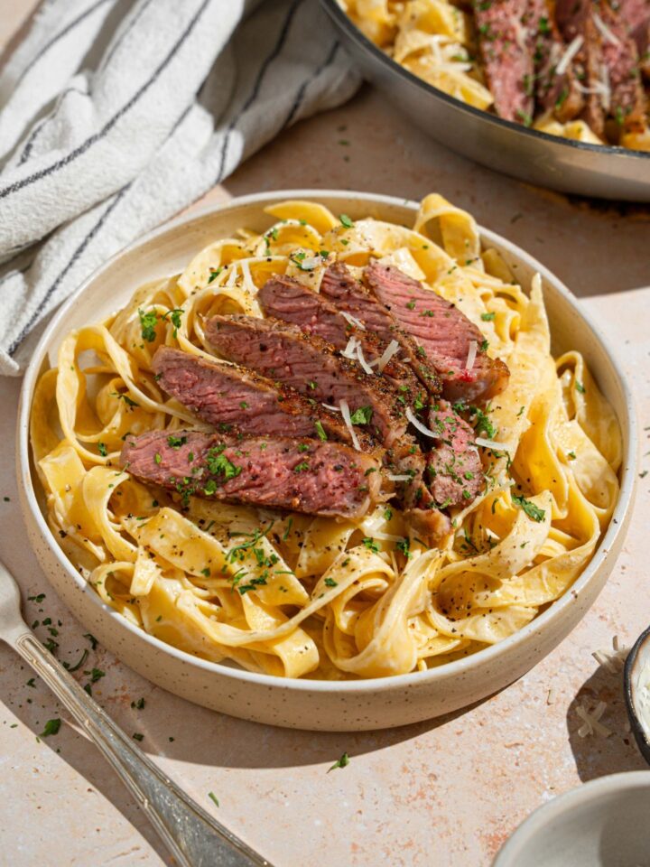 Steak Alfredo (Creamy Fettuccine Alfredo with Steak)