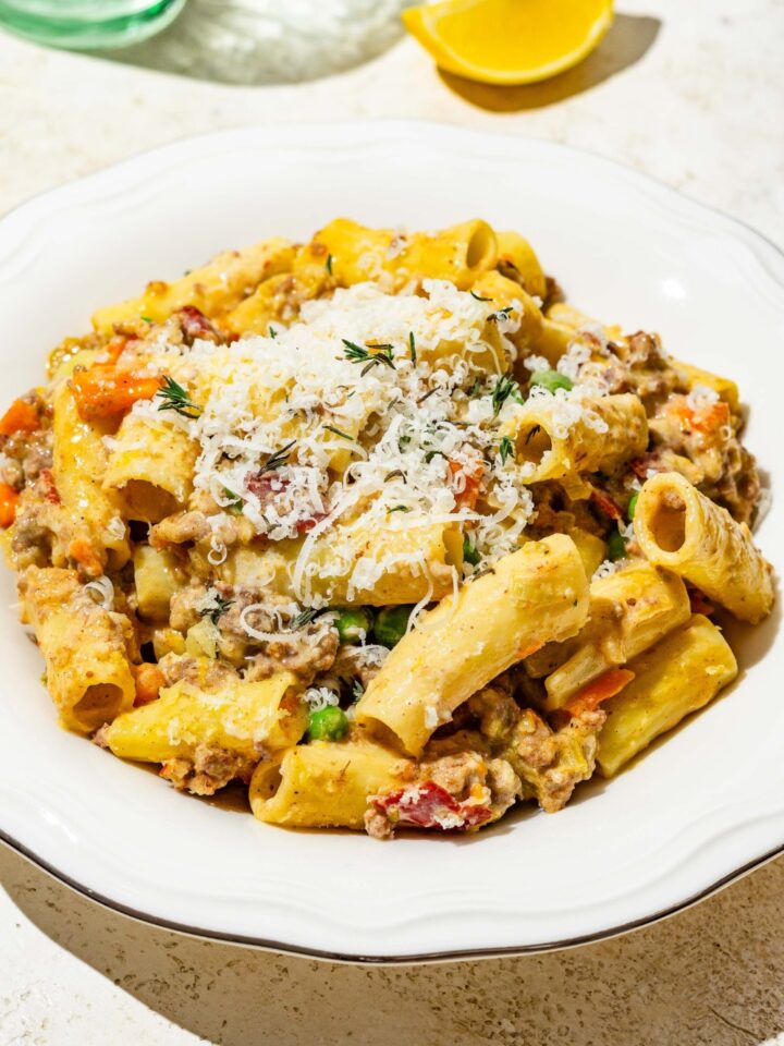 White Bolognese Recipe (Creamy Ragu Bianco with Rigatoni)