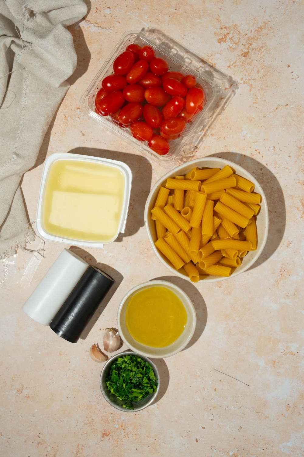 - Cherry tomatoes: They burst and turn jammy in the oven, which makes the sauce naturally sweet and thick.